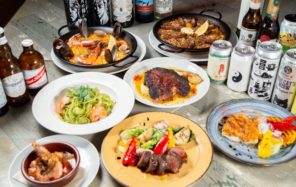 世界食堂の人気メニューをお得に一気に楽しめる人気のコースです! 前菜三種盛り / ジャークチキン&マッシュポテト / 魚介のパエリア(+100円でチョリソーに変更可能)/ 飲み放題(+500円で生ビールも飲み放題)